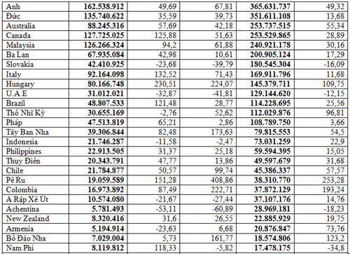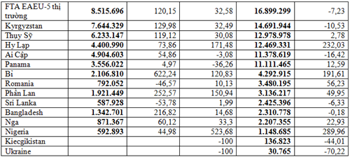 Xuất khẩu sang thị trường Đông Nam Á đạt trên 1,6 tỷ USD, tăng 67,37%, chiếm 5,21%;