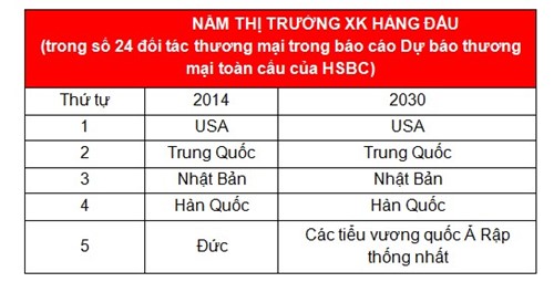 Dự báo về dài hạn, HSBC nhận định xuất khẩu của Việt Nam sẽ tiếp tục tăng trưởng mạnh trong trong giai đoạn 2016 -2030, với tốc độ dự kiến đạt hơn 10%/năm.