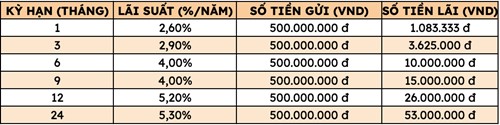 Lãi suất tiền gửi kỳ hạn 1 tháng hiện ở mức 2,6%/năm.