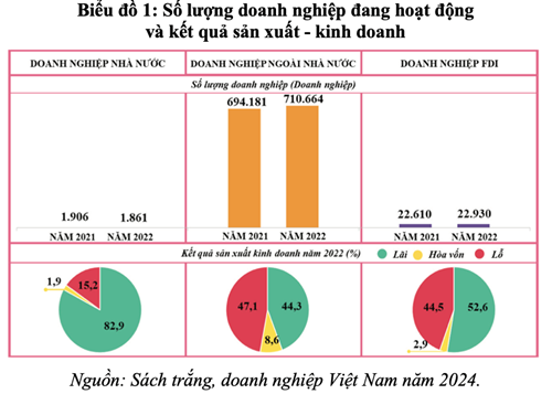 Theo thống kê, cả nước hiện có 710.664 doanh nghiệp ngoài nhà nước, chiếm 96,6% số doanh nghiệp. Trong số này, 44,3% doanh nghiệp có lãi, 8,6% hoà vốn và 47,1% đang kinh doanh thua lỗ. Tỷ lệ doanh nghiệp có lãi tuy chưa chiếm ưu thế tuyệt đối, nhưng cho thấy sự phát triển về mặt quy mô và vai trò của khu vực kinh tế tư nhân trong nền kinh tế thị trường định hướng xã hội chủ nghĩa tại Việt Nam.