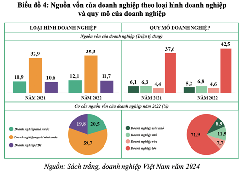 Trong năm 2022, khu vực doanh nghiệp ngoài nhà nước thu hút nguồn vốn lớn nhất, đạt 35,3 triệu tỷ đồng, chiếm 59,7% vốn của toàn bộ khu vực doanh nghiệp, tăng 7,3% so với năm 2021. Tuy nhiên, do phần lớn doanh nghiệp thuộc nhóm nhỏ và siêu nhỏ, nên có quy mô vốn bình quân chỉ đạt 49,7 tỷ đồng/ doanh nghiệp.