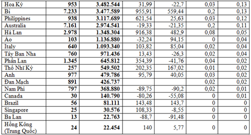 Đứng sau thị trường chủ đạo Trung Quốc là thị trường Indonesia, trong quý I/2026 nhập khẩu đạt 496.070 tấn, tương đương 520,95 triệu USD, giá nhập khẩu 1.050 USD/tấn, tăng 59,45% về lượng, tăng 39,89% về kim ngạch nhưng giảm 12,27% về giá so với quý I/2025, chiếm 13,71% trong tổng lượng và chiếm 20% tổng kim ngạch.