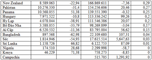 Nhìn chung, xuất khẩu điện thoại và linh kiện sang hầu hết các thị trường trọng điểm trong năm 2025 tăng kim ngạch so với năm 2024.